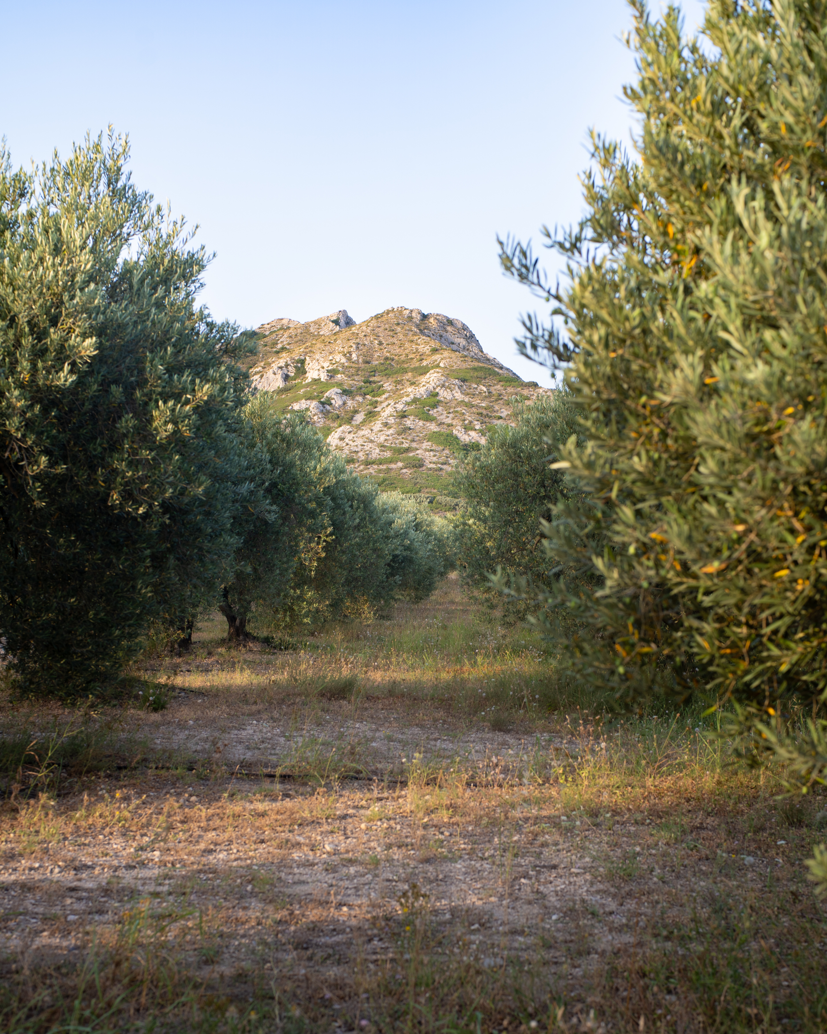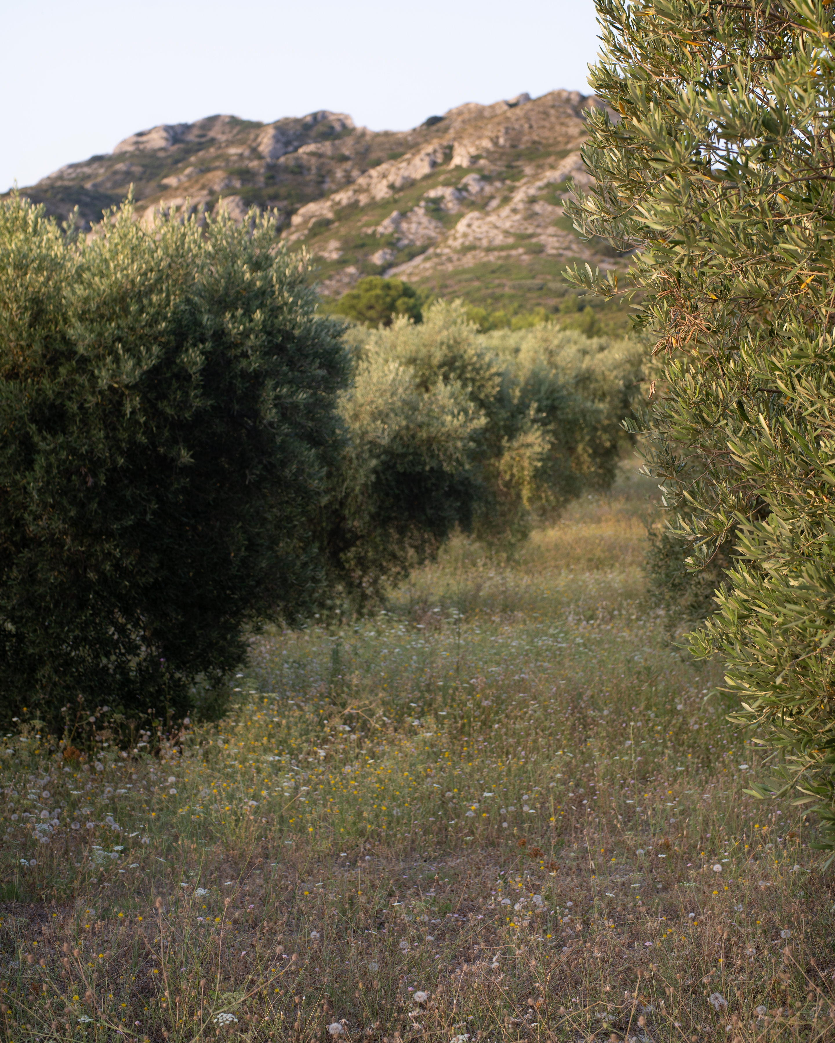 As dusk settles, the setting transforms. Soft lights illuminate the façade, tree shadows dance under a pink-hued sky, and the atmosphere becomes almost surreal. The only sounds are the whisper of the wind through olive branches and the distant song of cicadas.